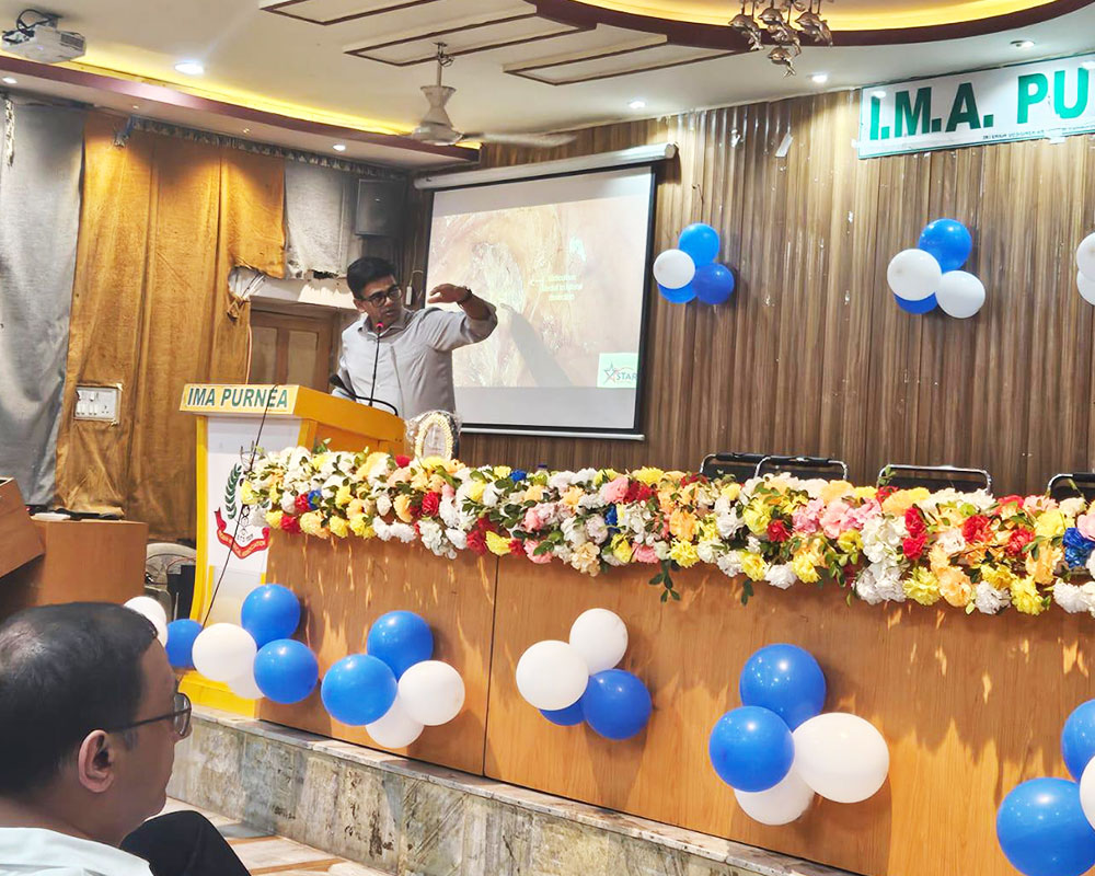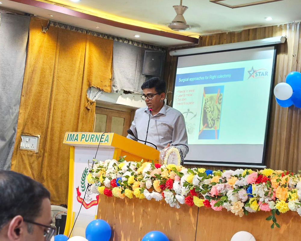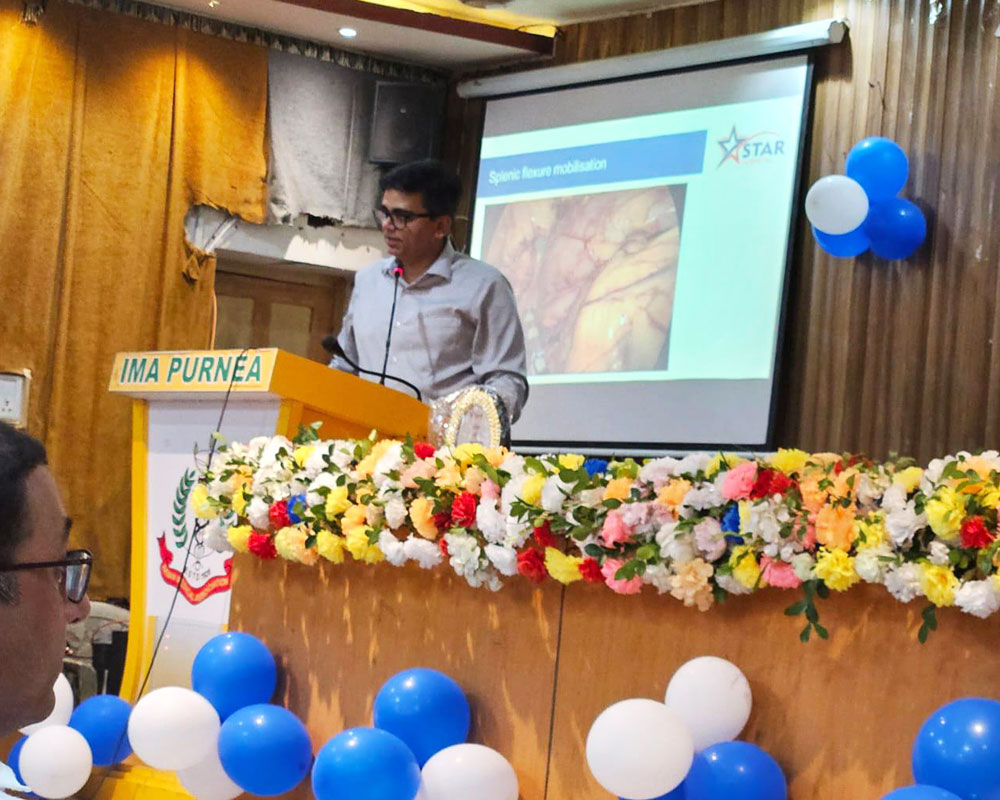 On 21 July 2024, Dr Vishant Deo shared an insightful Continuing Medical Education regarding laparoscopic colorectal cancer surgery. The presentation was conducted at I.M.A. Purnea in the presence of other medical delegates. Dr Deo shared insights regarding advanced techniques and modern practices which have assisted the healthcare industry towards enhancing the treatment process.